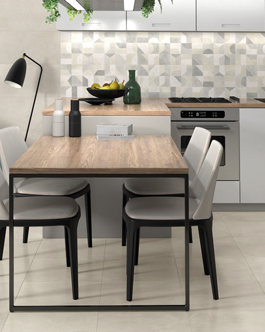 Plattornas storlek och utförande tillsammans med den neutrala färgskalan gör Studio till en klassisk och mångsidig serie. Serien finns i fyra basfärger: White, Beige, Grey, Antracite samt en dekorplatta, Geo Decor, som matchar samtliga färger. Dekorplattans med sitt geometriska mönster gör sig perfekt som fondvägg eller stänkskydd och passar i såväl badrummet som i köket.